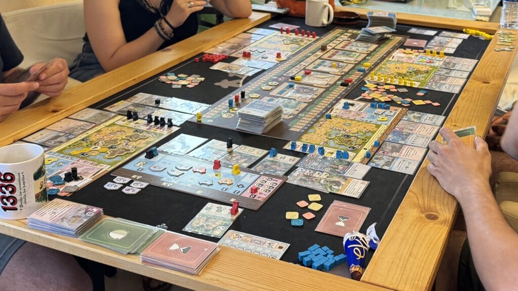 Le croisement des deux pistes déclenche la fin immédiatement. Pas de dernier tour. Pas de round final. Vous aviez prévu un combo dévastateur en trois coups ? Dommage, votre adversaire vient de croiser ses marqueurs. Après trois heures de planification méticuleuse, cette conclusion abrupte laisse un goût amer. Plusieurs parties se sont terminées avec des joueurs figés, incrédules, la carte gagnante encore en main.