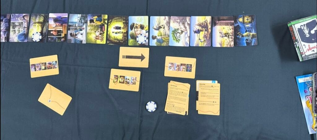 - Construction de la Frise : Les joueurs posent leurs cartes à gauche ou droite de la frise existante, en argumentant (« Je pense que cette scène vient après, car le personnage a enlevé son pull »).