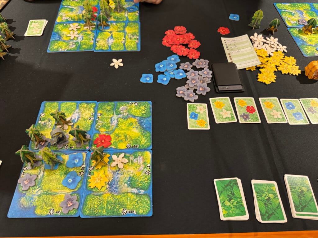 Ce n’est pas un jeu agressif. Mais quand le joueur avant toi rafle la carte Fleur Orchidée dont tu avais désespérément besoin pour compléter ta zone Est… tu ressens quelque chose. Un mélange de résignation et de calcul précipité. C’est exactement ce qu’un bon jeu familial doit provoquer.