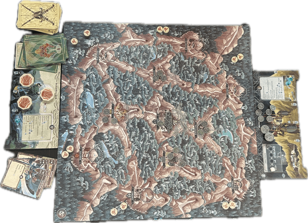 Ironwood est un jeu de duel asymétrique. Chaque joueur incarne un clan aux capacités et objectifs radicalement différents. D’un côté, les Ironclad, robustes et technophiles, exploitent les montagnes à la recherche de précieux cristaux pour construire leurs forges. De l’autre, les Woodwalkers, agiles et connectés à la nature, protègent la forêt et cherchent à invoquer un ancien gardien en réunissant des totems sacrés. Le tout se déroule sur un magnifique plateau illustré, représentant une région montagneuse parsemée de forêts.